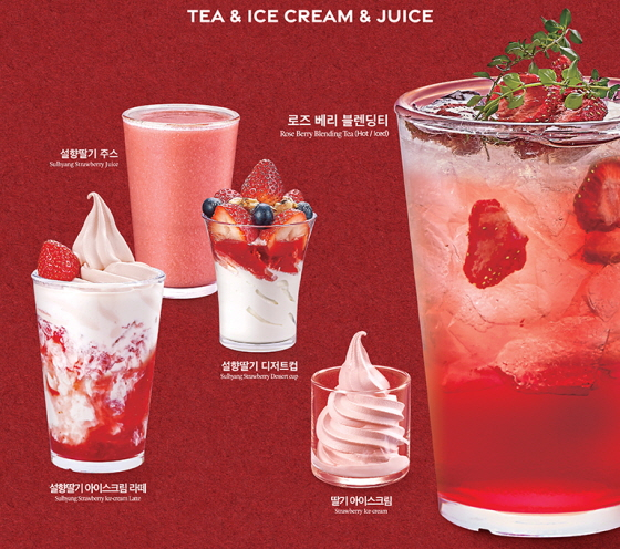 먼저, 로즈 베리 블렌딩 티와 딸기 아이스크림을 우선 준비했다. 15일에는 설향딸기 아이스크림 라떼, 설향딸기 주스, 설향딸기 디저트컵을 새롭게 선보인다.