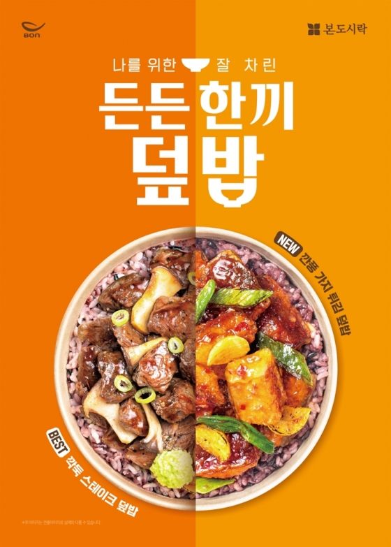 이렇게 해서 본도시락은 새롭게 선보인 깐풍 가지 튀김 덮밥까지 총 8종의 '잘 차린 든든 한 끼 덮밥' 라인업을 갖췄다. 지난 4종의 덮밥류 첫 출시 약 2개월 여 만에 20만 그릇 이상 판매고를 기록하면서 고객들의 높은 수요를 방증한 바 있다.