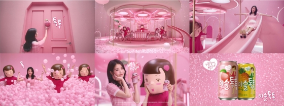 하이트진로는 "이번 광고는 핑크빛 이슬톡톡 테마파크를 콘셉트로 진행했다"며 "이슬톡톡을 마셨을 때의 기분을 테마파크에서의 즐거움으로 표현했다"고 전했다.