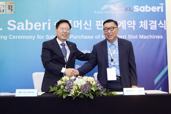 12일 강원랜드는 필리핀 마닐라 소재 쉐라톤 마닐라베이 호텔에서 동남아시아 최대 슬롯머신 유통사 RGB와 슬롯머신 판매 계약 체결식을 가졌다고 밝혔다.
