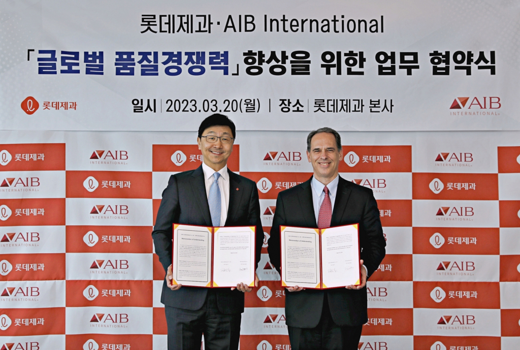 롯데제과가 지난 20일 서울 양평동 본사에서 AIB 인터내셔널과 글로벌 품질 관리와 식품안전을 위한 업무협약(MOU)을 진행했다고 21일 밝혔다.
