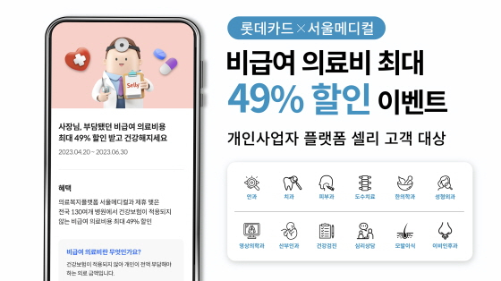 롯데카드가 의료복지플랫폼 '서울메디컬' 운영사 이공일컴퍼니와 제휴해 개인사업자 플랫폼 '셀리(Selly)' 고객을 대상으로 비급여 의료비 할인 이벤트를 진행한다.