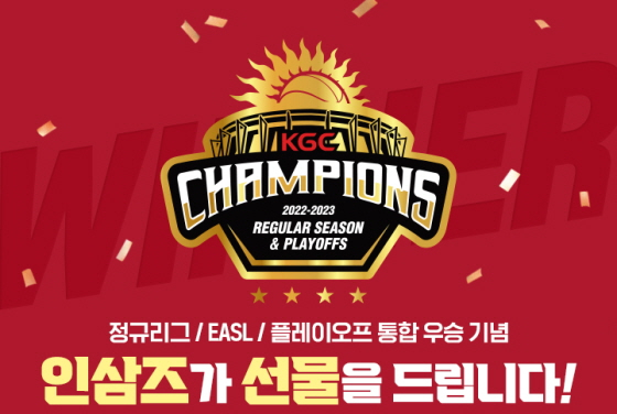 14일까지 진행되는 이번 기획전은 프로농구 안양 KGC인삼공사는 올 시즌 정규리그를 우승한데 이어 플레이오프 챔피언결정전에서 7차전 연장전까지 가는 접전 끝에 승리하며 '통합우승'을 자축하는 의미다. 또 지난 3월 EASL(동아시아 슈퍼리그) 챔피언스 위크에서도 우승을 차지하며, KGC인삼공사는 올 시즌에만 트로피를 3개나 거머쥐었다.