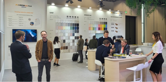 홈씨씨 인테리어는 이번 인터줌 2023을 통해 △G-PET필름 △인테리어필름 △고내후성시트 등 최신 디자인 트렌드와 KCC글라스의 친환경 기술을 접목한 고기능성 필름 200여종을 전시하고 뛰어난 제품 경쟁력을 소개해 호평받았다. 특히 친환경이 유럽을 포함한 세계 인테리어 시장의 주요 키워드로 자리 잡으면서 친환경 제품인 G-PET필름이 관람객들의 큰 관심을 끌었다.