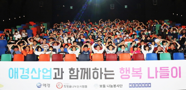 애경산업이 지난 23일 메가박스 상암월드컵경기장점에서 (사)희망을나누는사람들과 함께 발달장애인을 위한 문화 나눔 행사인 '제2회 행복 나들이'를 진행했다.