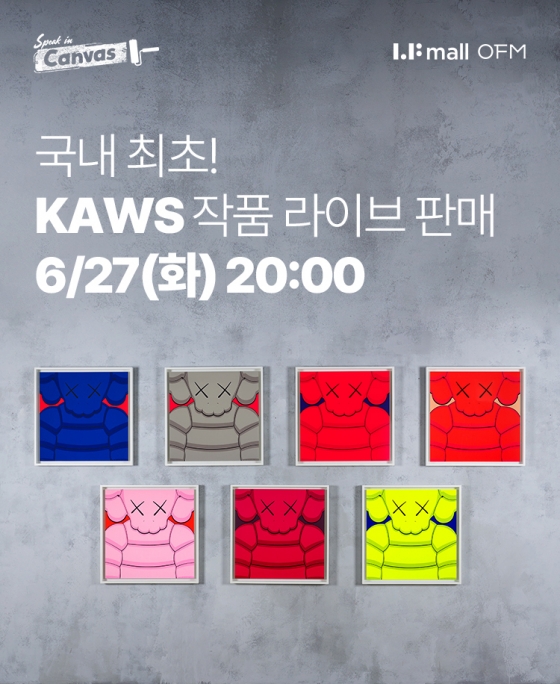 LF몰이 신개념 아트 라방 OFM '스피크 인 캔버스(Speak in Canvas)'를 통해 세계적 팝 아티스트 '카우스(KAWS)'의 'What Party' 에디션 작품을 국내 최초로 라이브 판매한다고 26일 밝혔다.