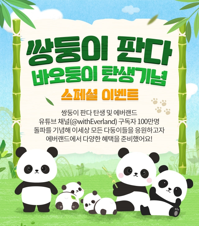 삼성물산 리조트부문(사장 정해린)이 운영하는 에버랜드가 국내 최초 쌍둥이 판다 탄생과 유튜브 100만 구독자 돌파를 기념해 고객 감사 이벤트를 진행한다고 27일 전했다.