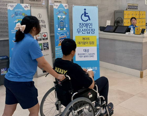입장 게이트에서는 거동이 불편한 고객을 위한 휠체어 무상 대여 서비스도 제공하고 있다.