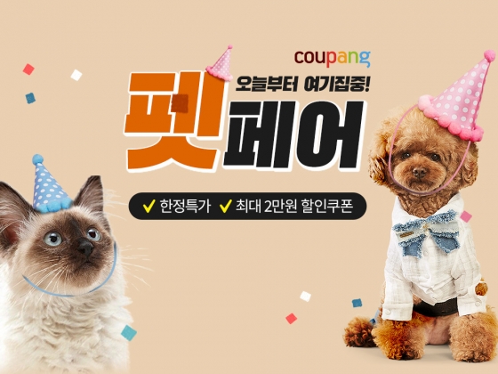 쿠팡은 오는 15일까지 반려동물과 함께하는 고객을 위한 기획전 '펫페어'를 진행한다고 5일 밝혔다.