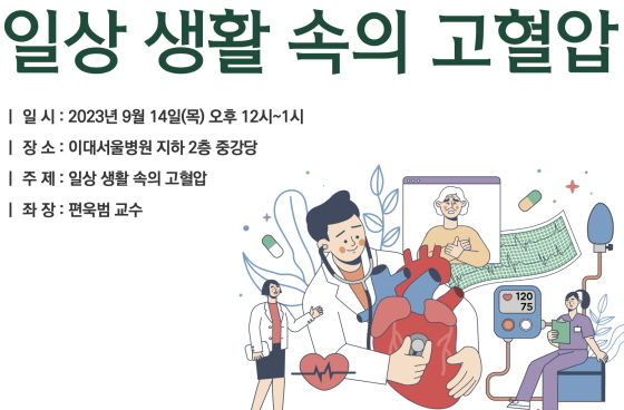 이대서울병원 순환기내과가 오는 14일 목요일 오후 12시부터 1시까지 이대서울병원 지하2층 중강당에서 일반 시민들을 대상으로 시민 건강강좌를 개최한다.