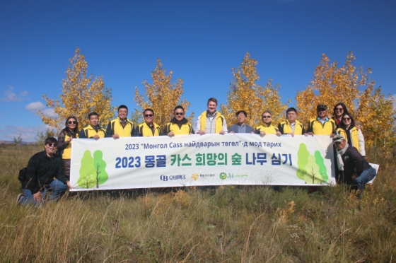 지난 11일 몽골 에르덴 솜 지역에 위치한 '카스 희망의 숲' 일대에서 오비맥주 법무정책부문 구자범 수석 부사장, 아시아 본사(버드와이저 APAC) 법무정책부문 크렉(Craig Katerberg) 부사장, 영업총괄 최상범 부사장, 푸른아시아 서울본부 이재원 국장, 푸른아시아 몽골지부 신기호 지부장, 조림사업장 주민대표 냠수렝, 몽골 대학생과 현지 주민 등으로 구성된 환경 봉사단 40여 명이 나무심기 조림활동을 펼쳤다.