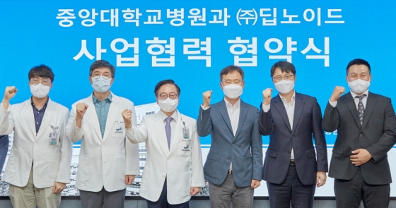 중앙대학교병원과 인공지능(AI) 전문기업 ㈜딥노이드가 9월 11일 중앙대병원에서 인공지능(AI) 영상 판독 솔루션 딥뉴로를 활용한 공동 연구 사업에 협력하기로 했다.