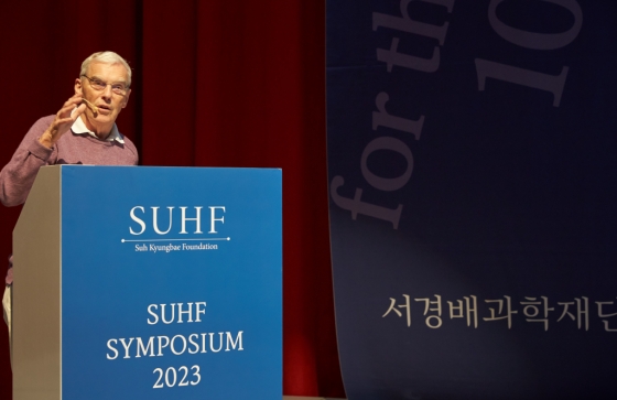 올해 'SUHF 심포지엄 2023'은 2017년 노벨화학상 공동 수상자인 리처드 헨더슨(Richard Henderson) 영국 케임브리지대 MRC 분자생물학 연구소 교수의 기조 강연으로 막을 올렸다. 생체 분자를 고해상도로 볼 수 있는 초저온 전자현미경을 개발한 공로로 노벨화학상을 수상한 리처드 헨더슨 교수는 '물리에서 생물로의 연구 모험'을 주제로, 위대한 발견에 이르기까지 삶에서 겪은 다양한 경험들과 전자현미경 기술을 개발하기 위한 연구 여정을 소개했다.