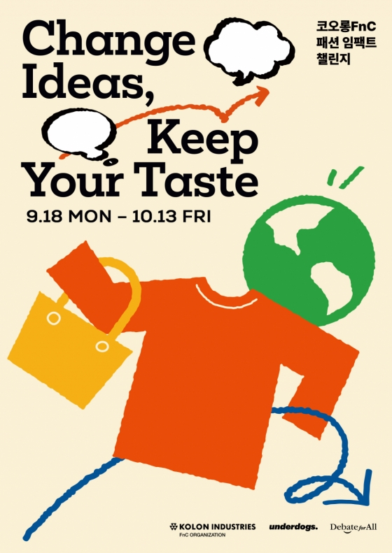 코오롱FnC '패션 임팩트 챌린지(KOLON FnC Fashion Impact Challenge)'는 패션 생태계에 새로운 가치를 창출할 솔루션을 토론하는 토너먼트 대회다. 대한민국 대학(원)생이 솔루션을 개발하고 고도화 과정을 거친 후, 다른팀과 토론 라운드를 통해 검증된 혁신 솔루션을 기업에 전달하는 형식이다. 코오롱FnC는 참가자들이 '지속가능한 패션'이라는 공통의 주제로 지식을 공유하고 건강하게 토론하는 자리를 마련, 아이디어를 인큐베이팅하고 성장 역량을 강화하는 기회를 제공하고자 한다. 또한 코오롱FnC는 올해를 시작으로 매년 ESG패션 솔루션 대회 개최를 구상하고 있으며, 앞으로 더 다양한 참가자와 아이디어 모집을 통해 아시아의 대표적인 패션 솔루션 대회로 자리매김하는 것을 목표로 한다.