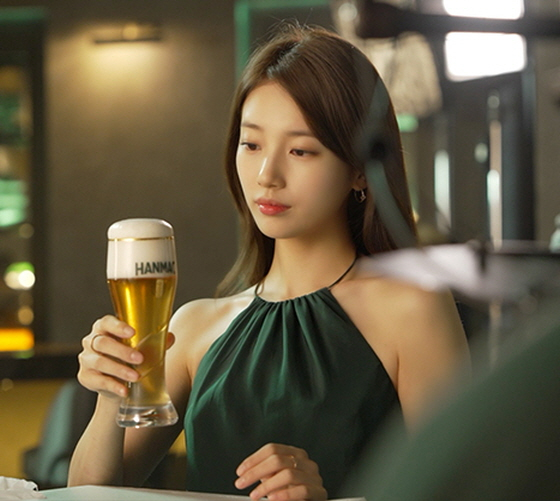 영상 속 수지가 부드럽게 음미하는 맥주잔은 CG가 아닌 실제 한맥 제품으로, 기존에 남자 모델들이 주를 이루던 강렬하고 탄산감 가득한 맥주 광고와는 대조되는 부드러움을 선사한다.