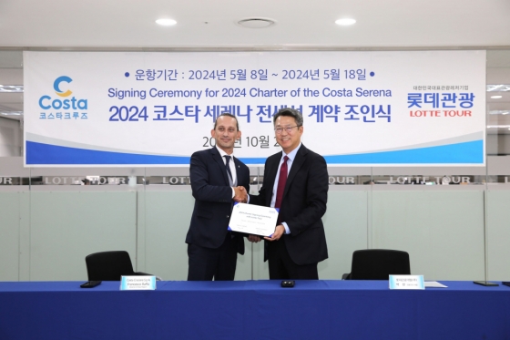 롯데관광개발은 지난 27일 롯데관광 서울지점에서 글로벌 크루즈 선사인 코스타 크루즈와 2024년 크루즈 전세선 운항 계약을 공식 체결했다고 30일 밝혔다.