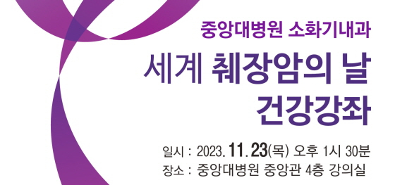 중앙대학교병원이 11월 23일 오후 1시 30분부터 중앙대병원 4층 강의실에서 세계 췌장암의 날을 맞아 췌장암에 대한 관심을 고취하고자 건강강좌를 개최한다.