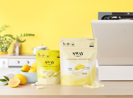 SWAY는 스마트 파워 성분을 함유해 찌든 기름기부터 다양한 양념이 묻은 식기 등을 깨끗하게 세척해 준다. 또한 식기의 세정을 도와주는 세제와 건조를 도와주는 린스 성분을 한 번에 담은 '올인원'(All-in-one) 제품으로 사용의 편리성을 더했다.