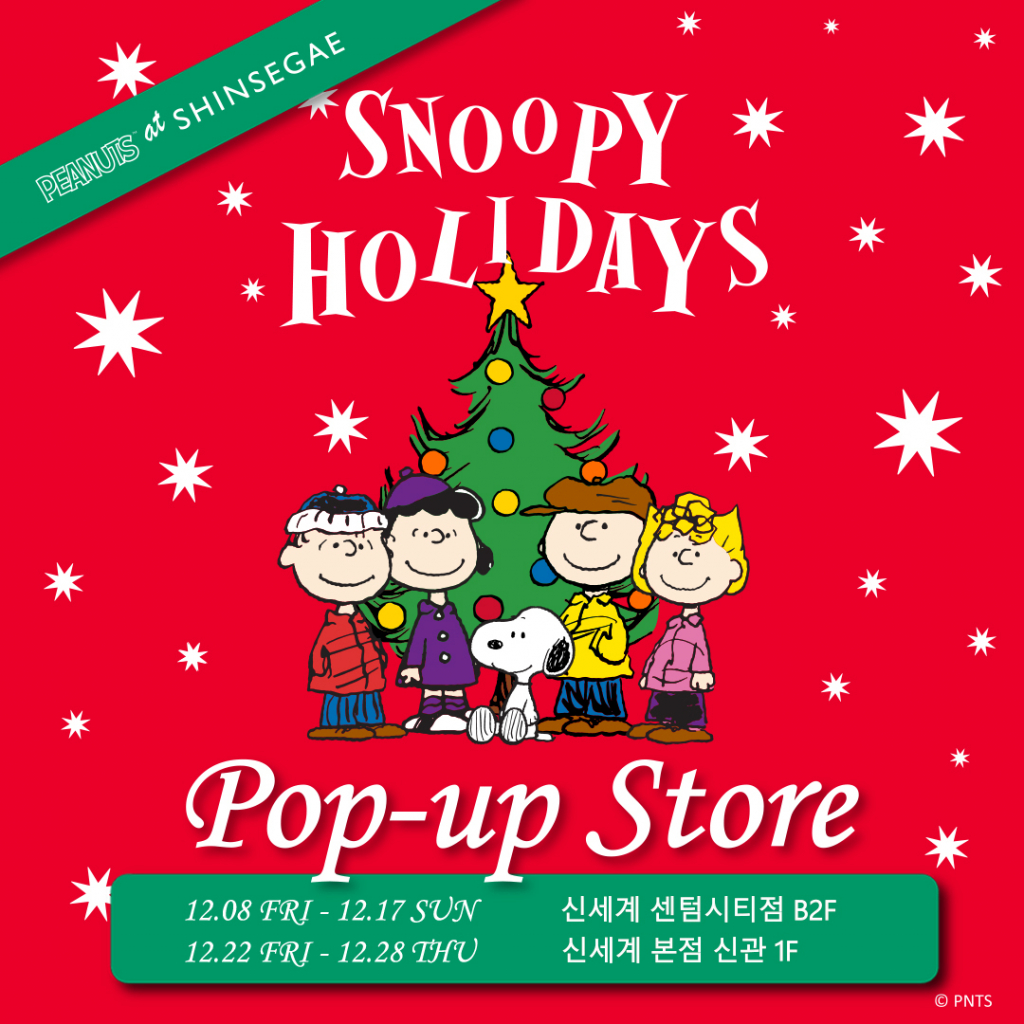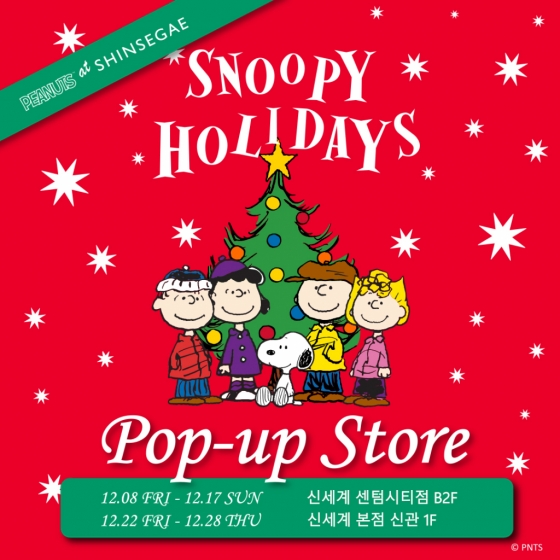 피너츠와 신세계가 함께 진행하는 크리스마스 팝업스토어는 홀리데이 시즌을 맞아 겨울과 크리스마스 테마로 운영된다. 12월 8일부터 17일까지 신세계백화점 센텀시티점 하이퍼 스테이지와 12월 22일부터 28일까지 신세계백화점 본점 아트리움에서 진행된다.