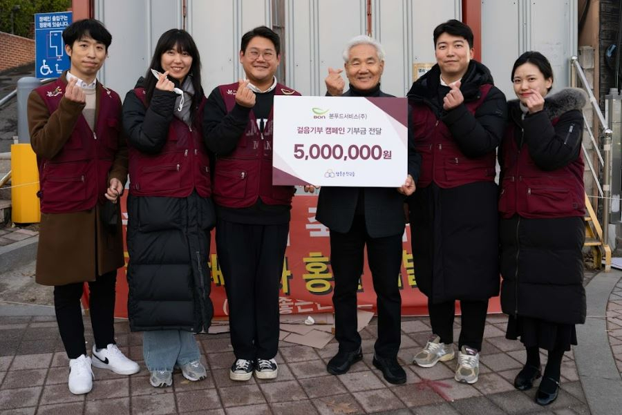 본푸드서비스는 지난 10월 한 달간 걸음기부 앱 '워크온'을 활용해 기부금을 조성했다. 본우리집밥, 일마지오, 푸드가든 직원 총 368명이 참여해 4천6만 195보를 기록했으며, 목표 걸음 수인 2천만 보의 두 배를 초과 달성해 본사 매칭금 500만원을 마련했다.