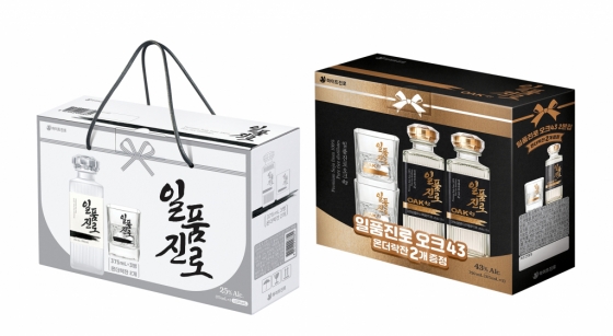 하이트진로는 오늘부터 증류식 소주 '일품진로'(알코올 도수 25도), '일품진로 오크43'(43도)를 술과 술잔으로 구성된 선물세트를 판매한다고 23일 밝혔다. 설 명절에 소중한 사람들에게 감사의 마음을 전달할 수 있도록 다양한 구성과 가격대로 선물세트를 기획하게 됐다.