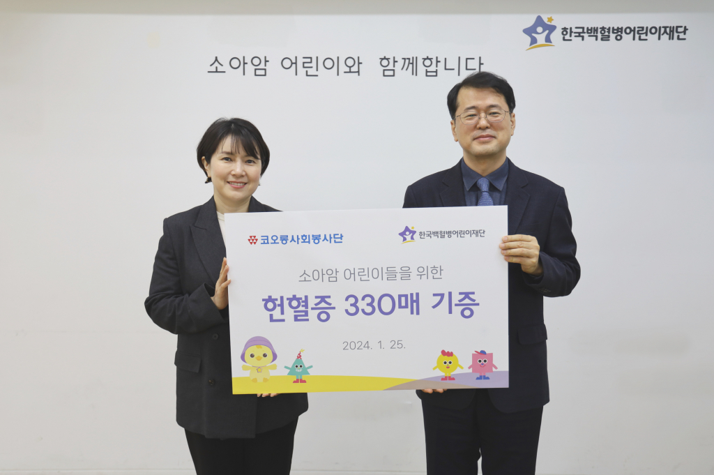 코오롱그룹이 25일 서울 성북구에 위치한 한국백혈병어린이재단에 소아암 어린이들을 위한 헌혈증 330장을 기부했다.