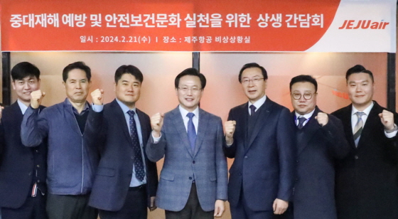 제주항공이 21일 오전 서울 강서구 제주항공 서울지사에서 지상 조업 등 13개 협력사의 대표이사를 포함한 산업안전보건 관리자를 초청해 중대재해 예방 및 안전보건문화 실천을 위한 상생 간담회를 진행했다.