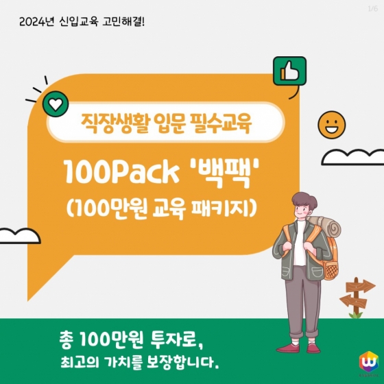 우리들파트너스에서 진행하는 100Pack(이하 백팩)은 신입사원 교육이 필요한 곳이라면 전국 어디든 찾아가서 8시간 동안 양질의 교육을 제공하는 신입사원 온보딩 교육 프로그램이다. 100만원으로 신입사원의 역량을 강화할 수 있다는 점에서 많은 기업의 관심이 높다. 무엇보다 상대적으로 교육의 기회가 적은 중소기업 신입사원들에게 양질의 신입사원 교육을 제공하며, 중견·대기업 수시 채용의 경우에도 인원이 적어 별도의 교육을 편성하기 어려울 때 활용하면 좋다.