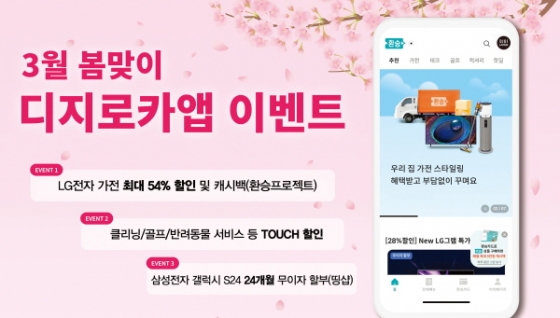 우선, '환승프로젝트'에서는 3월 1일부터 3월 31일까지 LG전자 TV/냉장고/공기청정기 등 가전 구매 시 최대 54% 할인해주고 구매 건당 캐시백 혜택을 제공하는 '환승 이사·혼수 기획전'을 연다.
