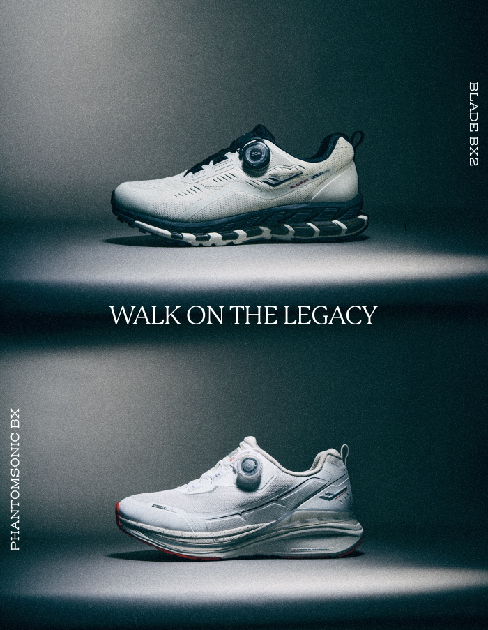 특히 '블레이드 BX' 시리즈의 독보적인 기능적 요소인 발의 좌우 흔들림을 제어해주는 측면 'G-FRAME'(지 프레임)과 힐 부위 'S-BLADE'(에스 블레이드) 설계로 걸을 때 바른 자세를 유도해 보행 안정성 유지 기능을 갖췄다. 또, 소프트 미드솔을 적용해 신체 충격량을 완화하고 부상 위험도 감소에 도움을 준다.