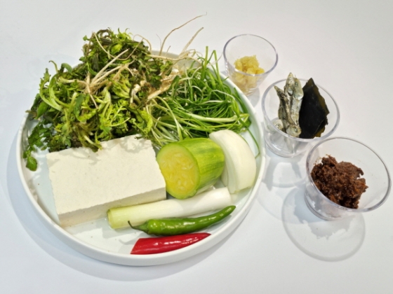 - 냉이 150g, 달래 50g. 애호박 1/4개, 두부 반모