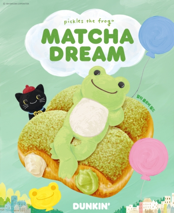 던킨은 IPX(구 라인프렌즈)와 협업해 세상에서 가장 행복한 개구리 캐릭터 '피클스 더 프로그(pickles the frog)'를 활용해 그린 컬러가 돋보이는 이번 신제품을 더욱 친숙하게 선보일 예정이다.