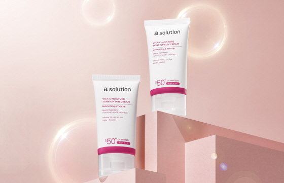 에이솔루션 수분 선크림은 △자극받은 피부에 진정 효과를 더해주는 '히알루론 수분 마일드 선크림' △화사하고 생기 있는 피부를 연출해 주는 '비타씨(C) 수분 톤업 선크림' 2종으로 구성됐다.