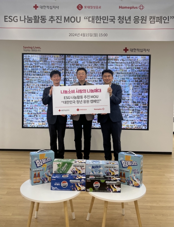 롯데칠성, 홈플러스x대한적십자사와 청년응원 캠페인 MOU