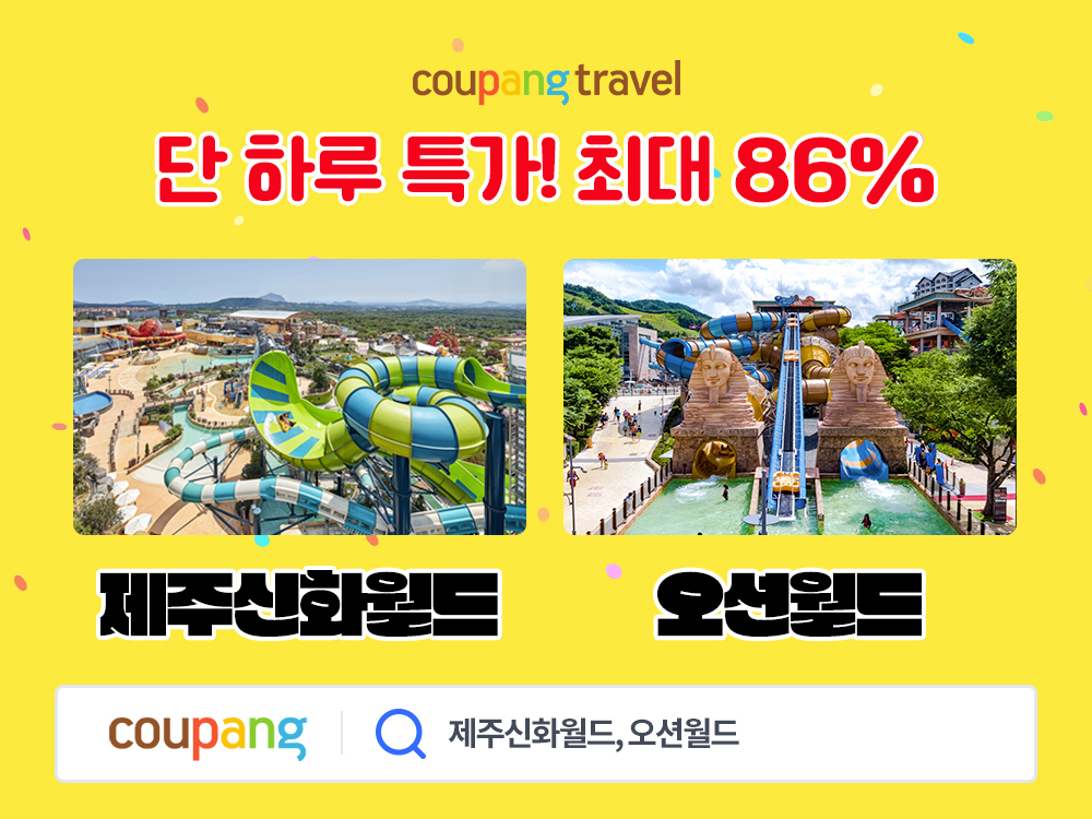 쿠팡 관계자는 "5월 황금연휴 기간에 여행 계획을 세우는 와우회원을 위해 특가 상품을 모았다"며 "고객 수요를 반영한 상품인만큼 호응을 얻을 것으로 예상된다"고 말했다. 행사 페이지는 쿠팡 앱에서 '제주신화월드' '오션월드'를 검색하면 확인할 수 있다.