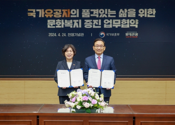 롯데관광개발은 24일 서울 용산구 전쟁기념관에서 국가보훈부와 국가유공자 문화복지 증진을 위한 업무협약을 체결했다고 밝혔다.