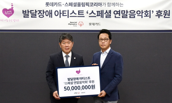이날 전달식은 롯데카드 조좌진 대표이사와 스페셜올림픽코리아 이용훈 회장이 참여한 가운데 진행됐다. 롯데카드가 전달한 후원금은 5000만원으로, 스페셜올림픽코리아 주최로 11월 23일 오후 2시 서울 서초구 예술의전당 IBK챔버홀에서 열리는 '2024 스페셜 연말음악회'의 개최, 운영 등을 위해 사용된다.