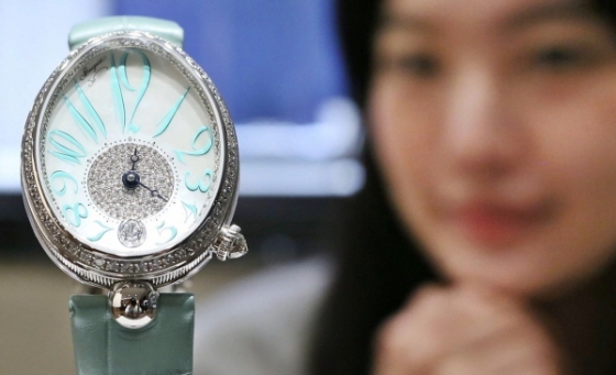 갤러리아백화점 명품관에서 '브레게' 매장 리뉴얼 오픈을 기념해 신규 모델 '레인 드 네이플 민트'를 선보인다.