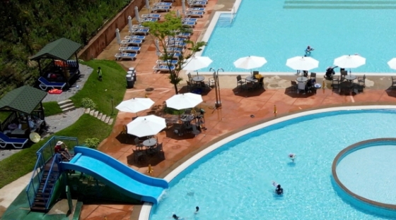 국제 규격에 맞춘 50m×24m 대형풀과 달팽이 모형의 유아풀은 미끄럼틀이 설치되어 있어 다양한 연령층의 고객들이 여유로운 물놀이를 즐길 수 있다.