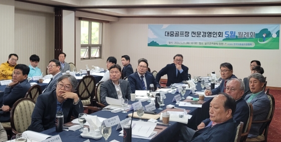 사단법인 한국대중골프장협회(회장 임기주)는 5월 21일(화) 충북 진천 소재 '골프존카운티 진천'에서 「대중골프장 전문경영인회」 5월 월례회를 개최했다. 이날 월례회에는 협회 소속 대중골프장 CEO와 임원 등 전문경영인 40여명이 참석했다.