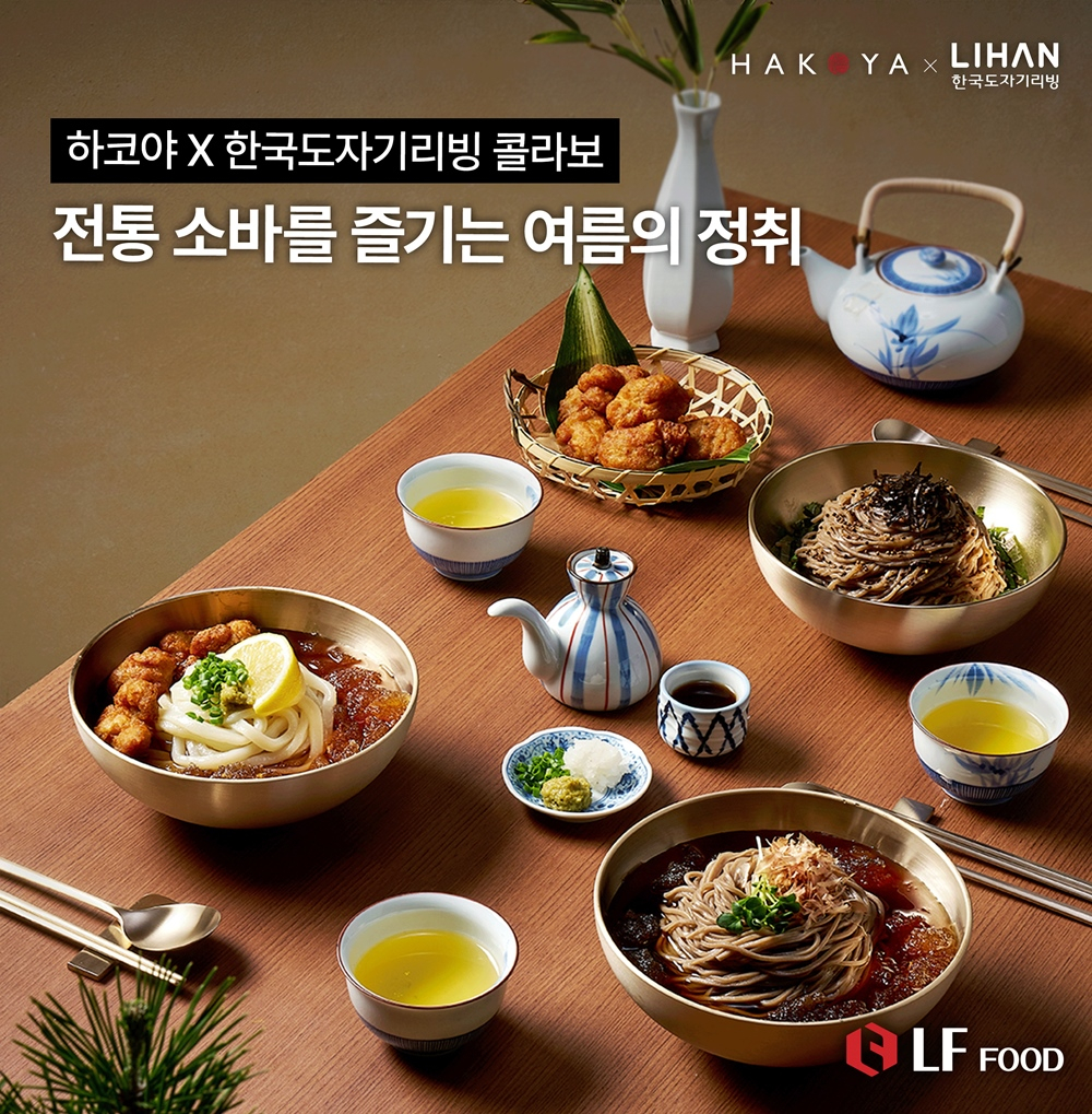 LF푸드의 프리미엄 일식브랜드 하코야가 소바의 계절 여름을 맞아 한국도자기리빙 리한과 손을 맞잡고 콜라보 프로젝트를 전개한다고 24일 밝혔다.