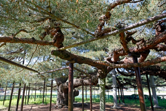 소나무 한 그루 둘러보는데 무슨 야단일까 싶지만 석송령이라면 다르다. 석송령은 추정 수령이 약 700년으로 줄기 둘레가 4.2m, 높이 11m에 이르는 고목이다. 무엇보다 반송 품종 소나무다. 반송의 반(盤)은 대야, 쟁반 등을 뜻한다. 줄기가 밑에서부터 여러 갈래로 퍼지는 형태가 특징이다. 석송령은 수관 폭이 무려 30m에 달한다. 크다는 말로는 부족하다. 멀리서 보면 소나무 한 그루가 아니라 솔숲인 듯하다.