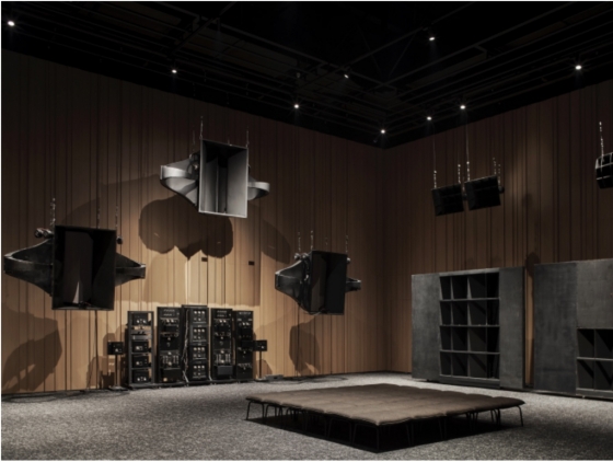 오디움 내부의 전시실 벽은 나무로 단차를 두어 흡음력을 높였다. 웨스턴 일렉트릭(Western Electric)사의 대표 오디오 시스템 중 하나인 '미러포닉(Mirrorphonic)'이 전시된 지하 2층 라운지의 공간은 청음에 유효한 패브릭(Fabric)을 자재로 사용하여 '플라워(Flower)' 형태의 공간을 연출했다. 이는 대형극장용 오디오 '미러포닉'의 음향을 부드럽고 입체적으로 만들어 낸다.