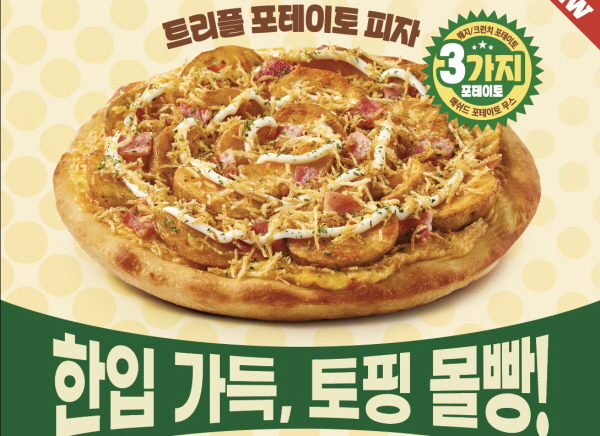 '트리플 포테이토 피자'는 통통한 웨지 감자와 부드러운 매쉬드 포테이토 무스, 바삭한 크런치 포테이토 등 3가지 감자 토핑과 화이트 치즈 소스가 어우러져 색다른 식감을 자랑한다. 짭조름한 베이컨이 포테이토 토핑과 어우러져 계속 먹고 싶은 것이 특징이며, 풍성한 토핑 양으로 두툼한 크기를 뽐낸다. 특히 이번 피자에는 리뉴얼된 '숙성 도우'가 적용됐다.