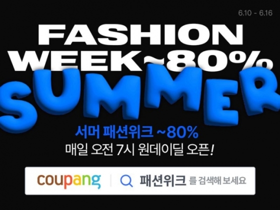 쿠팡이 오는 16일까지 '서머 패션위크'를 진행한다. 이번 행사는 여성복·남성복·신발·가방·액세서리·언더웨어 등 패션 카테고리 상품 2만여 개를 최대 80%까지 할인하는 상반기 마지막 대규모 세일 행사다.