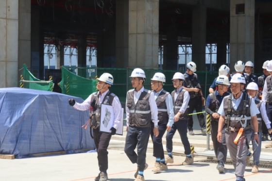 한화 건설부문이 여름철 폭염과 장마 대비 사고 예방을 위해 대표이사를 비롯한 경영진이 주관하는 건설현장 안전점검을 진행했다.