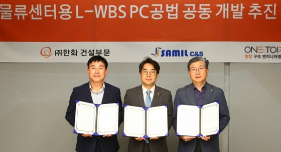 한화 건설부문이 6월 20일 서울 장교동 한화빌딩에서 삼일씨앤에스 및 원탑구조엔지니어링과 '물류센터용 Longspan-Wide Beam System PC공법* (이하 L-WBS공법) 공동개발 추진 협약'을 체결했다.