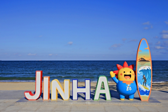 진하해수욕장은 부산 기장군과 맞닿은 울산 남단부 울주군 서생면에 자리하며 한반도에서 해가 가장 일찍 뜨는 일출 명소 간절곶과 가깝다. 물이 맑고 백사장이 널찍해 여름이면 피서객들이 많이 찾는데, 파라솔, 구명조끼, 튜브, 샤워장, 주차장 등을 모두 무료로 이용할 수 있어 금상첨화다. 파도와 바람이 좋아 서핑, 윈드서핑, 카이트서핑 같은 해양 레포츠 명소로도 유명하며 해수욕장 운영 기간에는 수상 레저 이용 구간과 유영 구간을 분리 운영한다. 긴 해변을 따라 해안 산책로가 잘 정비되어 가볍게 걷기 좋고 예쁜 포토존도 군데군데 설치되어 있다. 해변 남쪽에는 대바위공원, 북쪽에는 명선교가 볼거리를 더한다. 해변 앞바다에는 아담한 무인도 명선도가 자리하는데 신비로운 분위기의 야간 경관조명이 명물이다. 썰물 때면 해변에서 걸어서 진입 가능하니 방문 전 물때를 확인하자. 해수욕장 개장 기간은 6월 28일부터 8월 31일까지이며 명선도 야간 경관조명은 월요일과 기상 악화 시에는 운영하지 않는다.