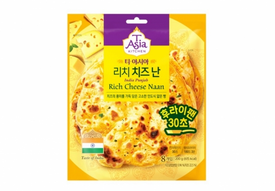 신제품 '티아시아 리치 치즈 난'은 인도 왕실 요리 전문 셰프의 레시피로 정통의 맛을 그대로 재현했고 반죽을 숙성 발효해 쫄깃함이 특징이다. 고소하고 담백한 치즈 향이 반죽 식감과 어우러져 그냥 먹어도 맛있고 커리에 찍어 먹으면 더 매력적이다. 1봉에 8장 구성으로 온가족이 함께 즐기기에도 좋다.