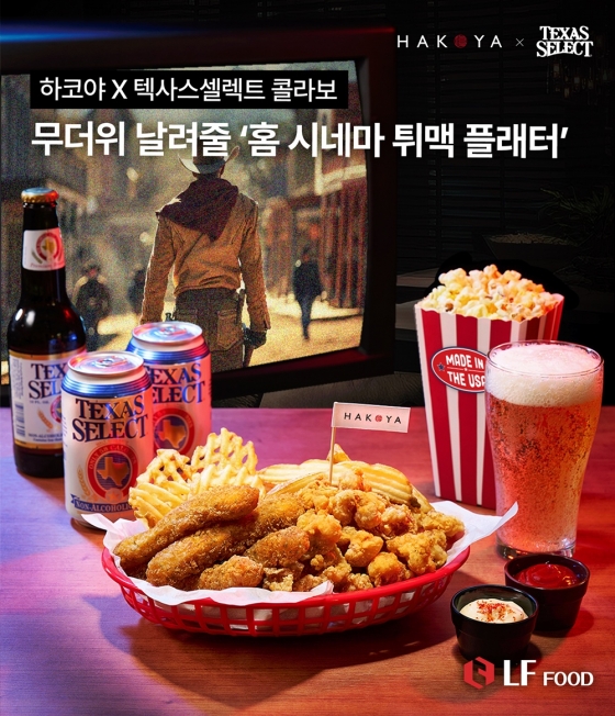 때 이른 무더위에 맥주 성수기가 앞당겨지고 있는 가운데, LF푸드는 무알콜 맥주브랜드 텍사스셀렉트와의 콜라보레이션을 통해 시원한 에어컨이 함께하는 나만의 아늑한 공간에서 홈 시네마와 즐기기 좋은 튀맥 플래터를 준비했다. 맥주와 궁합이 좋은 하코야 닭오도독 튀김과 무알콜맥주인 텍사스셀렉트로 튀맥 플래터를 구성하며 맛과 재미가 함께하는 미식 홈 시네마 제안에 나섰다.